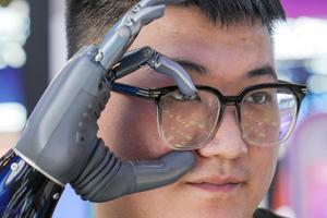 (250717) -- BEIJING, 17 julio, 2025 (Xinhua) -- Un empleado de la empresa tecnológica BrainCo usa una mano protésica inteligente para quitarse las gafas en el área de la Cadena de Tecnología Digital de la III Exposición Internacional de la Cadena de Suministro de China (CISCE, por sus siglas en inglés), en Beijing, capital de China, el 17 de julio de 2025. Celebrada del 16 al 20 de julio, la CISCE 2025 comenzó el miércoles en Beijing. Una innovación clave de esta edición es la "Zona Debut", dedicada a los estrenos mundiales de nuevos productos, tecnologías y ecosistemas, presentando innovaciones revolucionarias que impulsan la colaboración industrial. (Xinhua/Ju Huanzong) (jg) (ah) (ce)