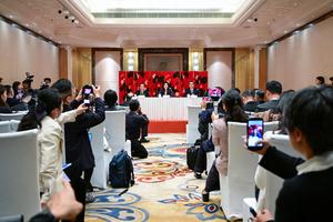(260410) -- BEIJING, 10 abril, 2026 (Xinhua) -- Una conferencia de prensa es llevada a cabo por una delegación del partido Kuomintang (KMT) Chino, en Beijing, capital de China, el 10 de abril de 2026. (Xinhua/Chen Yehua) (jg) (da) (ce)