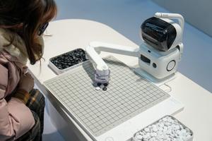 (250225) -- BEIJING, 25 febrero, 2025 (Xinhua) -- Imagen del 24 de febrero de 2025 de una visitante jugando al gobang con un robot en el Mundo de Robots de Beijing, en Beijing, capital de China. El Mundo de Robots de Beijing está ubicado en el parque industrial de robótica de Yizhuang en Beijing, y sirve como un centro integral de exhibición de robots, mostrando los últimos logros en la industria de la robótica. (Xinhua/Ju Huanzong) (oa) (ah) (vf)