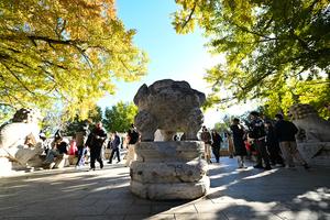 (251026) -- BEIJING, 26 octubre, 2025 (Xinhua) -- Turistas visitan el Museo de Arte de Talla sobre Piedra, en Beijing, capital de China, el 26 de octubre de 2025. En esta época en que el otoño da paso al invierno, el Museo de Arte de Talla de Piedra de Beijing se adorna con hojas de ginkgo amarillentas, que atraen a numerosos visitantes. (Xinhua/Chen Zhonghao) (rtg) (ah)