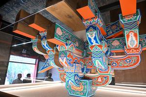 (250527) -- BEIJING, 27 mayo, 2025 (Xinhua) -- Imagen del 26 de mayo de 2025 de un antiguo elemento arquitectónico decorado con Caihua exhibido durante la exposición titulada "Un legado milenario de Caihua: Herencia e Innovación en la Pintura Policromada Arquitectónica China de Estilo Oficial", celebrada en el Museo del Palacio, en Beijing, capital de China. La exposición, abierta oficialmente al público el martes, exhibe 43 piezas de antiguos objetos Caihua chinos y obras de arte Caihua de estudiantes apoyados por el Fondo Nacional de las Artes de China. (Xinhua/Jin Liangkuai) (oa) (ah) (ce)