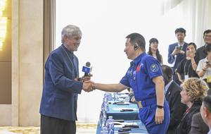 (250711) -- BEIJING, 11 julio, 2025 (Xinhua) -- Bora Milutinovic (i), ex director técnico de la selección nacional de fútbol de China, estrecha la mano de Yang Liwei, subdirector diseñador del programa espacial tripulado de China, en el subforo sobre "Intercambios y aprendizaje mutuo entre civilizaciones: Entendimiento y amistad entre los pueblos" durante la Reunión Ministerial del Diálogo entre Civilizaciones Globales, en Beijing, capital de China, el 11 de julio de 2025. Seis subforos paralelos de la Reunión Ministerial del Diálogo entre Civilizaciones Globales fueron celebrados aquí el viernes. (Xinhua/Chen Yehua) (jg) (da) (ce)