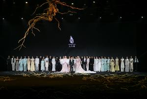 (250909) -- BEIJING, 9 septiembre, 2025 (Xinhua) -- Imagen del 8 de septiembre de 2025 del diseñador Bian Huizhong y modelos posando para una fotografía grupal después de presentar la nueva colección de Saint Joy durante la Semana de la Moda de China, en Beijing, capital de China. (Xinhua/Chen Shuo) (oa) (ah) (ce)