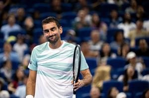 (250925) -- BEIJING, 25 septiembre, 2025 (Xinhua) -- Marin Cilic reacciona durante el partido de primera ronda de individuales masculinos entre Jannik Sinner, de Italia, y Marin Cilic, de Croacia, en el torneo de tenis China Open 2025, en Beijing, China, el 25 de septiembre de 2025. (Xinhua/Hu Jingwen) (rtg) (ra) (vf)