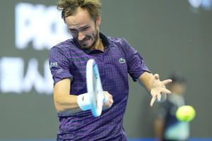 (250930) -- BEIJING, 30 septiembre, 2025 (Xinhua) -- Daniil Medvedev devuelve la pelota durante el partido de semifinales de individuales masculinos entre Daniil Medvedev, de Rusia, y Learner Tien, de Estados Unidos, en el torneo de tenis China Open 2025, en Beijing, China, el 30 de septiembre de 2025. (Xinhua/Xie Han) (oa) (ah) (vf)