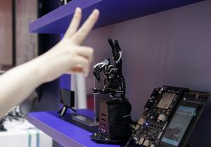 (250717) -- BEIJING, 17 julio, 2025 (Xinhua) -- Un visitante interactúa con una mano biónica inteligente en el estand de Qualcomm en el área de Cadena de Tecnología Digital de la III Exposición Internacional de la Cadena de Suministro de China (CISCE, por sus siglas en inglés), en Beijing, capital de China, el 17 de julio de 2025. Con el tema "Conectar el Mundo para un Futuro Compartido", la exposición, organizada por el Consejo Chino para la Promoción del Comercio Internacional, se inauguró el miércoles en Beijing. Celebrada del 16 al 20 de julio, la CISCE 2025 reunió a más de 650 empresas e instituciones de 75 países, regiones y organizaciones internacionales, junto con más de 500 de sus socios de oferta y demanda. (Xinhua/Ding Hongfa) (da) (ra) (vf)