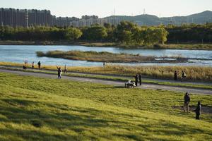 (251026) -- BEIJING, 26 octubre, 2025 (Xinhua) -- Personas disfrutan su tiempo libre junto al río Yongding, en el distrito de Shijingshan de Beijing, capital de China, el 26 de octubre de 2025. (Xinhua/Zhang Chenlin) (oa) (da)
