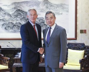 (250623) — BEIJING, 23 junio, 2025 (Xinhua) — Wang Yi, miembro del Buró Político del Comité Central del Partido Comunista de China y director de la Oficina de la Comisión Central de Asuntos Exteriores, se reúne con el ex primer ministro británico, Tony Blair, en Beijing, capital de China, el 23 de junio de 2025. (Xinhua/Wang Ye) (rtg) (oa) (ce)