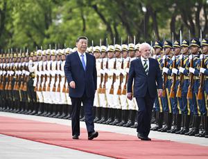 (250513) -- BEIJING, 13 mayo, 2025 (Xinhua) -- El presidente chino, Xi Jinping, ofrece una ceremonia de bienvenida para el presidente brasileño, Luiz Inácio Lula da Silva, en la plaza frente a la puerta este del Gran Palacio del Pueblo previo a sus conversaciones, en Beijing, capital de China, el 13 de mayo de 2025. Xi mantuvo conversaciones el martes en Beijing con Lula, quien se encuentra en China realizando una visita de Estado. (Xinhua/Yan Yan) (ah) (ra) (vf)