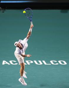(250228) -- ACAPULCO, 28 febrero, 2025 (Xinhua) -- Imagen del 27 de febrero de 2025 de Denis Shapalov, de Canadá, sirviendo la pelota durante el partido de cuartos de final de individuales ante Marcos Giron, de Estados Unidos, en el torneo de tenis Abierto Mexicano de la ATP 2025, en Acapulco, México. (Xinhua/Francisco Cañedo) (rtg) (ra) (vf)