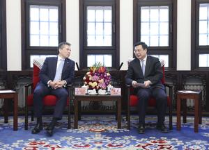 (250425) -- BEIJING, 25 abril, 2025 (Xinhua) -- El presidente de la Agencia de Noticias Xinhua, Fu Hua, se reúne con Tom Fletcher, subsecretario general de la ONU para asuntos humanitarios y coordinador de la ayuda de emergencia, en Beijing, capital de China, el 25 de abril de 2025. Ambos intercambiaron puntos de vista sobre el fortalecimiento de la cooperación en la cobertura de noticias y el mejoramiento de la asociación dentro de los mecanismos multilaterales. (Xinhua/Ding Haitao) (jg) (da) (ce)