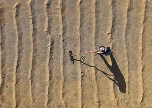 (250716) -- BEIJING, 16 julio, 2025 (Xinhua) -- Vista aérea tomada con un dron el 15 de julio de 2025 de un aldeano aireando arroz, en el distrito de Hengshan de la ciudad de Hengyang, en la provincia de Hunan, en el centro de China. (Xinhua/Cao Zhengping) (jg) (da) (vf)