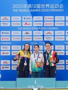 (250811) -- CHENGDU, 11 agosto, 2025 (Xinhua) -- La medallista de oro, Huang Jingqiu (c), de China, la medallista de plata, María Carolina Rodríguez Angarita (i), de Colombia, y la medallista de bronce, Marta Pozzi, de Italia, posan con sus medallas durante la ceremonia de premiación de la final de dinámica femenina sin aletas - FFS1-FFS2 del evento de apnea en los Juegos Mundiales 2025, en Chengdu, en la provincia de Sichuan, en el suroeste de China, el 11 de agosto de 2025. (Xinhua/Wang Xi) (oa) (ah) (ce)
