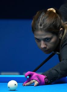 (250812) -- CHENGDU, 12 agosto, 2025 (Xinhua) -- Soledad Ayala, de Argentina, compite durante el partido de cuartos de final de pool femenino de billar entre Soledad Ayala, de Argentina, y Liu Shasha, de China, en los Juegos Mundiales 2025, en Chengdu, en la provincia de Sichuan, en el suroeste de China, el 12 de agosto de 2025. (Xinhua/Xu Bingjie) (jg) (ra)
