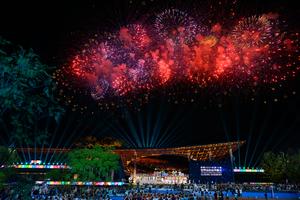 (250817) -- CHENGDU, 17 agosto, 2025 (Xinhua) -- Fuegos artificiales son vistos durante la ceremonia de clausura de los Juegos Mundiales 2025, en Chengdu, en la provincia de Sichuan, en el suroeste de China, el 17 de agosto de 2025. (Xinhua/Bei He) (rtg) (ah)