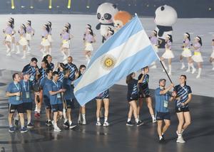 (250807) -- CHENGDU, 7 agosto, 2025 (Xinhua) -- Miembros de la delegación de Argentina llegan a la ceremonia de inauguración de los Juegos Mundiales 2025, en Chengdu, en la provincia de Sichuan, en el suroeste de China, el 7 de agosto de 2025. (Xinhua/Jiang Kehong) (rtg) (ra) (ce)