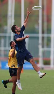 (250814) -- CHENGDU, 14 agosto, 2025 (Xinhua) -- Paul Benvegnen (d), de Francia, compite durante el encuentro del grupo B de la ronda preliminar mixta de disco volador entre Colombia y Francia, en los Juegos Mundiales 2025, en Chengdu, en la provincia de Sichuan, en el suroeste de China, el 14 de agosto de 2025. (Xinhua/Qiu Shaoyu) (rtg) (ra)