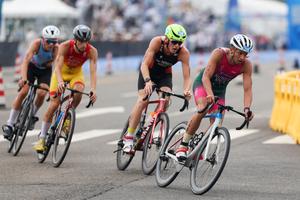 (250817) -- CHENGDU, 17 agosto, 2025 (Xinhua) -- Atletas compiten durante la final de relevos mixtos de duatlón en los Juegos Mundiales 2025, en Chengdu, en la provincia de Sichuan, en el suroeste de China, el 17 de agosto de 2025. (Xinhua/Wang Xiang) (oa) (ah)