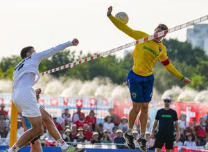 (250813) -- CHENGDU, 13 agosto, 2025 (Xinhua) -- Gabriel Petry Heck (d), de Brasil, compite durante el partido por la medalla de oro masculina de fistball entre Brasil y Alemania, en los Juegos Mundiales 2025, en Chengdu, en la provincia de Sichuan, en el suroeste de China, el 13 de agosto de 2025. (Xinhua/Tenzin Nyida) (jg) (da) (ce)