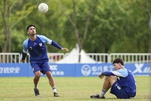 (250811) -- CHENGDU,11 agosto, 2025 (Xinhua) -- Sebastián Ignacio Vener (i), de Argentina, compite durante el partido del Grupo B de la ronda preliminar masculina de fistball entre Chile y Argentina en los Juegos Mundiales 2025, en Chengdu, en la provincia de Sichuan, en el suroeste de China, el 11 de agosto de 2025. (Xinhua/Wang Xiang) (rtg) (ah) (ce)