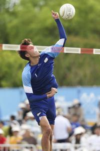 (250811) -- CHENGDU,11 agosto, 2025 (Xinhua) -- Nahuel Ezequiel Vener, de Argentina, compite durante el partido del Grupo B de la ronda preliminar masculina de fistball entre Chile y Argentina en los Juegos Mundiales 2025, en Chengdu, en la provincia de Sichuan, en el suroeste de China, el 11 de agosto de 2025. (Xinhua/Wang Xiang) (rtg) (ah) (ce)