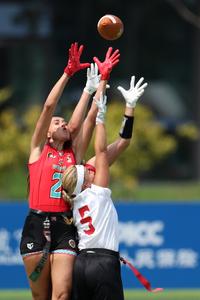 (250814) -- CHENGDU, 14 agosto, 2025 (Xinhua) -- Victoria Chávez (i), de México, disputa el balón con Kanatani Asahi, de Japón, durante el partido del grupo B de la ronda preliminar femenina de fútbol bandera entre México y Japón en los Juegos Mundiales 2025, en Chengdu, en la provincia de Sichuan, en el suroeste de China, el 14 de agosto de 2025. (Xinhua/Chen Bin) (rtg) (ra) (ce)