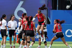 (250814) -- CHENGDU, 14 agosto, 2025 (Xinhua) -- Mónica Rangel (2-d), de México, festeja durante el partido del grupo B de la ronda preliminar femenina de fútbol bandera entre México y Japón en los Juegos Mundiales 2025, en Chengdu, en la provincia de Sichuan, en el suroeste de China, el 14 de agosto de 2025. (Xinhua/Chen Bin) (rtg) (ra) (ce)