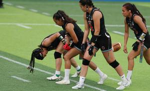 (250816) -- CHENGDU, 16 agosto, 2025 (Xinhua) -- Silvia Contreras (i), de México, compite durante el partido de semifinal femenina de fútbol bandera entre México y Canadá, en los Juegos Mundiales 2025, en Chengdu, en la provincia de Sichuan, en el suroeste de China, el 16 de agosto de 2025. (Xinhua/Chen Bin) (oa) (ra) (ce)