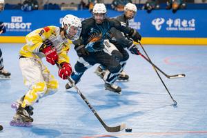 (250811) — CHENGDU, 11 agosto, 2025 (Xinhua) — Zhuang Haojie (i), de China, compite durante el partido masculino por el séptimo lugar del evento de hockey en línea en los Juegos Mundiales 2025, en Chengdu, en la provincia de Sichuan, en el suroeste de China, el 11 de agosto de 2025. (Xinhua/Xie Jianfei) (rtg) (ah) (ce)