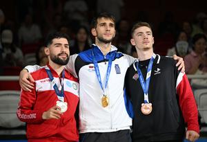CHINA-CHENGDU-JUEGOS MUNDIALES 2025-KICKBOXING-COMBATE MASCULINO POR PUNTOS -84KG-CEREMONIA DE PREMIACION