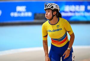 (250814) -- CHENGDU, 14 agosto, 2025 (Xinhua) -- Gabriela Rueda, de Colombia, reacciona al término de la final de la carrera de 5000 m por puntos femenina de patinaje de velocidad en línea en pista, en los Juegos Mundiales 2025, en Chengdu, en la provincia de Sichuan, en el suroeste de China, el 14 de agosto de 2025. (Xinhua/Xie Jianfei) (rtg) (ra) (ce)