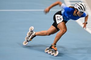 (250814) -- CHENGDU, 14 agosto, 2025 (Xinhua) -- Ivonne Saraí Nóchez Gallardo, de El Salvador, compite durante la final de los 200 m contrarreloj dual femenino de patinaje de velocidad en línea en pista en los Juegos Mundiales 2025, en Chengdu, en la provincia de Sichuan, en el suroeste de China, el 14 de agosto de 2025. (Xinhua/Xie Jianfei) (jg) (ah)