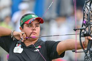 (250808) -- CHENGDU, 8 agosto, 2025 (Xinhua) -- Andrea Maya Becerra Arizaga, de México, compite durante el encuentro por la medalla de oro de compuesto por equipos mixtos del evento de tiro con arco entre Dinamarca y México en los Juegos Mundiales 2025, en Chengdu, en la provincia de Sichuan, en el suroeste de China, el 8 de agosto de 2025. (Xinhua/Yang Wenbin) (rtg) (ra) (ce)