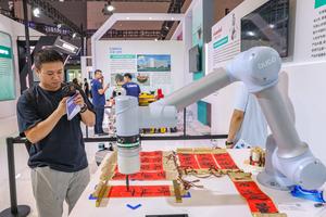 (250905) -- CHONGQING, 5 septiembre, 2025 (Xinhua) -- Un robot demuestra habilidades de caligrafía durante la Exposición Mundial de la Industria Inteligente 2025, en Chongqing, en el suroeste de China, el 5 de septiembre de 2025. La Exposición Mundial de la Industria Inteligente 2025 comenzó el viernes en la municipalidad de Chongqing, reuniendo a más de 600 empresas nacionales e internacionales para mostrar innovaciones en varios sectores, incluida la conducción autónoma, los hogares inteligentes y la economía de baja altitud. (Xinhua/Huang Wei) (rtg) (ra) (vf)