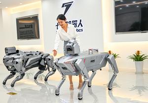 (250529) -- CHONGQING, 29 mayo, 2025 (Xinhua) -- Imagen del 27 de mayo de 2025 de una empleada presentando robots cuadrúpedos a prueba de explosiones en Sevnce Robotics, en la municipalidad de Chongqing, en el suroeste de China. En los últimos años, Chongqing ha implementado múltiples medidas para impulsar el desarrollo de la industria robótica. Ahora ha conformado toda una cadena industrial robótica que abarca Investigación y Desarrollo, fabricación completa de máquinas, pruebas, integración de sistemas, adaptación de piezas, capacitación de talentos y servicios de aplicación. En 2024, la producción de robots de Chongqing superó los 60.000 equipos, con un valor de producción superior a los 37 mil millones de yuanes (aproximadamente 5.1 mil millones de dólares estadounidenses).(Xinhua/Wang Quanchao) (jg) (ah) (vf)