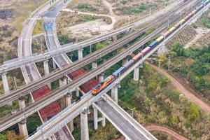 (260107) -- CHONGQING, 7 enero, 2026 (Xinhua) -- Vista aérea tomada con un dron el 7 de enero de 2026 de un tren de carga que transporta vehículos de nueva energía fabricados en Chongqing saliendo de la Estación de Yuzui en el Puerto de Guoyuan, en Chongqing, en el suroeste de China. Se espera que este tren de carga que partió el miércoles, llegue al Puerto de Nansha, en la ciudad de Guangzhou, en el sur de China, después de 48 horas para luego ser transferido a un buque con destino a Medio Oriente. Como una importante base de fabricación de vehículos, Chongqing ha operado de forma estable trenes de carga intermodales ferroviarios y marítimos en dirección este y sur a través de Ningbo, en la provincia de Zhejiang, en el este de China, y Qinzhou, en la región autónoma de la etnia zhuang de Guangxi, en el sur de China. (Xinhua/Tang Yi) (jg) (ra) (vf)