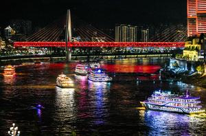 (250824) -- CHONGQING, 24 agosto, 2025 (Xinhua) -- Imagen del 23 de agosto de 2025 de turistas tomando botes para disfrutar la vista nocturna, en la municipalidad de Chongqing, en el suroeste de China. Bajo el cielo nocturno, Chongqing resplandece con luces y rebosa encanto. Desde el 19 de abril de este año, en las noches de los sábados y festivos importantes, Chongqing ha organizado regularmente espectáculos de luces con drones para impulsar aún más la economía nocturna de la ciudad. (Xinhua/Wang Quanchao) (rtg) (ah)