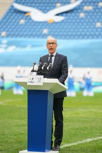 (250917) -- DALIAN, 17 septiembre, 2025 (Xinhua) -- Leonz Eder, presidente de la FISU, pronuncia un discurso durante la ceremonia de inauguración de la Copa Mundial Universitaria de Fútbol de la FISU 2025 celebrada en el Estadio Suoyuwan, en Dalian, en la provincia de Liaoning, en el noreste de China, el 17 de septiembre de 2025. (Xinhua/Zheng Huansong) (ah)