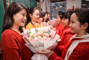 (250306) -- WUHAN, 6 marzo, 2025 (Xinhua) -- Estudiantes entregan flores a sus maestras en una escuela primaria, en Wuhan, en la provincia de Hubei, en el centro de China, el 6 de marzo de 2025. Varias actividades se llevan a cabo en todo el país para conmemorar el Día Internacional de la Mujer. (Xinhua/Zhao Jun) (rtg) (ra) (vf)
