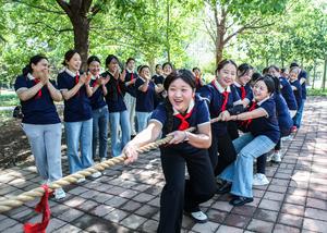 (250511) -- JIAOZUO, 11 mayo, 2025 (Xinhua) -- Imagen del 9 de mayo de 2025 de enfermeras de un centro de salud local participando en una competencia de tira y afloja durante un divertido juego deportivo, en el poblado de Qinghua del distrito de Bo'ai, en Jiaozuo, en la provincia de Henan, en el centro de China. El Día Internacional de las Enfermeras, que se conmemora anualmente el 12 de mayo se ha festejado a través de China en diversas formas. (Xinhua/Cheng Quan) (rtg) (ah)