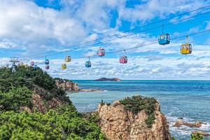 (251007) — BEIJING, 7 octubre, 2025 (Xinhua) — Imagen tomada con un dron el 7 de octubre de 2025 de turistas viajando en teleféricos turísticos en un punto escénico, en Rongcheng, en la provincia de Shandong, en el este de China. Turistas de todo el país no muestran señales de que su entusiasmo disminuya a medida que las vacaciones por el Día Nacional y el Festival del Medio Otoño llegan a su fin. (Xinhua/Li Xinjun) (oa) (ah) (ce)