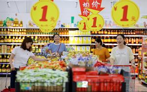 (250809) — BEIJING, 9 agosto, 2025 (Xinhua) — Personas realizan compras en un supermercado, en la ciudad de Zaozhuang, en la provincia de Shandong, en el este de China, el 9 de agosto de 2025. El índice de precios al consumidor (IPC) de China, uno de los principales indicadores de la inflación, subió un 0,4 por ciento en julio en comparación con el mes anterior, revirtiendo una caída del 0,1 por ciento en junio y superando el ritmo estacional promedio del 0,3 por ciento, de acuerdo con datos publicados el sábado por el Buró Nacional de Estadísticas. (Xinhua/Sun Zhongzhe) (oa) (da)