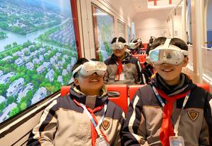 (250217) — SHANGHAI, 17 febrero, 2025 (Xinhua) — Estudiantes prueban dispostivos de Realidad Virtual en el Museo de Shanghai, en Shanghai, en el este de China, el 17 de febrero de 2025. Con una mezcla de nervios y emoción, muchos estudiantes en China asistieron a su primera clase especial del nuevo semestre. (Xinhua/Fang Zhe) (rtg) (oa) (vf)