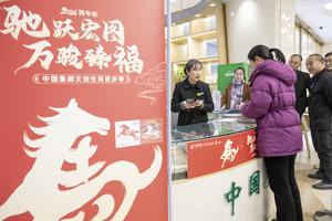(260105) -- SUQIAN, 5 enero, 2026 (Xinhua) -- Personas compran estampillas especiales conmemorativas del Año del Caballo, en Suqian, en la provincia de Jiangsu, en el este de China, el 5 de enero de 2026. China Post presentó el lunes una serie de dos estampillas especiales para celebrar el próximo Año del Caballo del zodíaco chino. (Xinhua/Ma Haifeng) (oa) (ah) (vf)