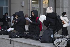 (251220) — BEIJING, 20 diciembre, 2025 (Xinhua) — Aspirantes revisan sus materiales de estudio afuera de un sitio de evaluación para el examen de ingreso a posgrado 2026, en Harbin, en la provincia de Heilongjiang, en el noreste de China, el 20 de diciembre de 2025. El examen nacional de China para la matriculación en posgrado comenzó el sábado. (Xinhua/Zhang Tao) (jg) (da)