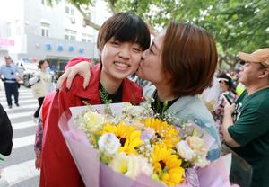 (250609) — BEIJING, 9 junio, 2025 (Xinhua) — Una familiar besa a una estudiante después del examen en un sitio del examen nacional de ingreso a la universidad, en la ciudad de Yangzhou, en la provincia de Jiangsu, en el este de China, el 9 de junio de 2025. El examen nacional de ingreso a la universidad de este año, también conocido como gaokao, comenzó el 7 de junio de este año. En algunas regiones, el examen finalizó el lunes. (Xinhua/Meng Delong) (oa) (rtg) (vf)
