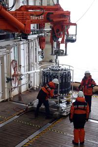 (250123) -- A BORDO DEL XUELONG 2, 23 enero, 2025 (Xinhua) -- Imagen del 18 de enero de 2025 de miembros del equipo de la 41ª expedición antártica de China preparándose para desplegar un instrumento de Conductividad, Temperatura y Profundidad, en el rompehielos de investigación chino Xuelong 2. El rompehielos de investigación chino Xuelong 2, o Dragón de Nieve 2, está realizando un estudio del ecosistema marino de un mes de duración en el mar de Amundsen, que incluye una investigación y monitoreo integral de la ecología biológica, el agua, el entorno sedimentario y atmosférico, y la distribución de contaminantes. Los miembros del equipo de expedición decoraron el barco para celebrar el próximo Festival de Primavera. (Xinhua/Huang Taoming) (rtg) (ra) (ce)