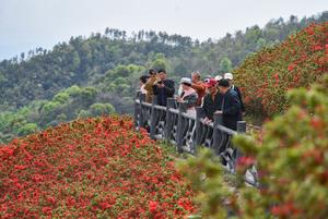 (260404) -- BEIJING, 4 abril, 2026 (Xinhua) -- Personas disfrutan de las flores de azalea durante el feriado del Festival Qingming, en la aldea de Hengla del poblado de Caozhai, en la ciudad de Jinhua, en la provincia de Zhejiang, en el este de China, el 4 de abril de 2026. (Xinhua/Shi Kuanbing) (jg) (da)