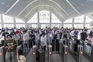 (250429) -- BEIJING, 29 abril, 2025 (Xinhua) -- Pasajeros se registran en la Estación de Ferrocarril de Lishui, en la ciudad de Lishui, en la provincia de Zhejiang, en el este de China, el 29 de abril de 2025. Se espera que la red ferroviaria de China maneje aproximadamente 144 millones de viajes de pasajeros durante la temporada alta de viajes de ocho días por el feriado del Primero de Mayo, que comenzó el martes, informó el operador ferroviario nacional. (Xinhua/Hu Xiaofei) (oa) (ah) (ce)