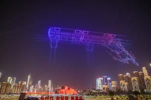 (250502) -- BEIJING, 2 mayo, 2025 (Xinhua) -- Imagen del 1 de mayo de 2025 de un espectáculo de luces con drones llevándose a cabo en el distrito de Nan'an de Chongqing, en el suroeste de China. Personas de toda China disfrutan de diversas maneras del feriado del Primero de Mayo en curso. (Xinhua/Huang Wei) (oa) (ra) (ce)